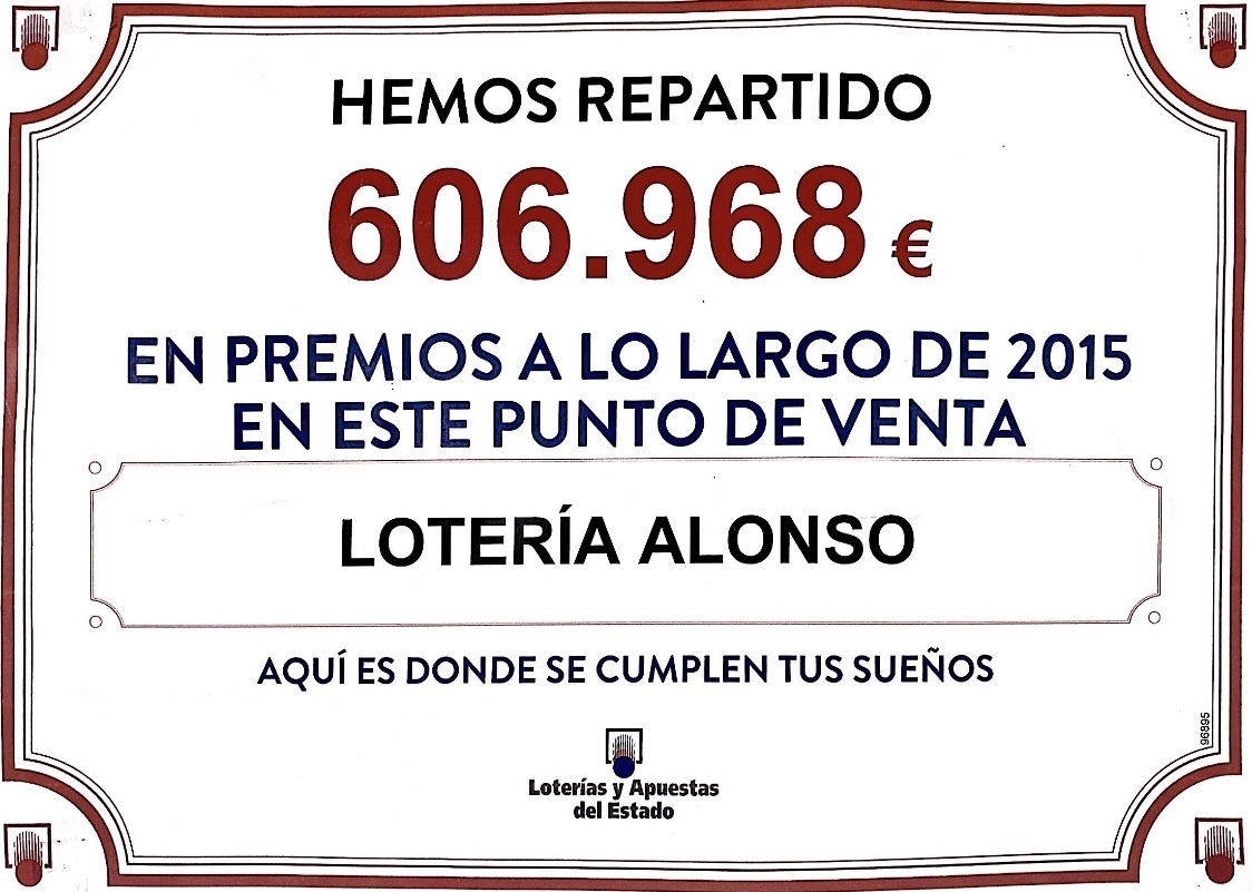 En la administración Alonso, somos un equipo de 3 personas, que nos levantamos cada día, con el único propósito de repartir suerte y alegría a nuestros clientes, que cuando salgan de nuestra casa, lo hagan con una sonrisa, por que no todos los días son buenos. Para que esto sea posible, todo el equipo mantiene viva la ilusión y pone a disposición todo su esfuerzo y saber hacer.